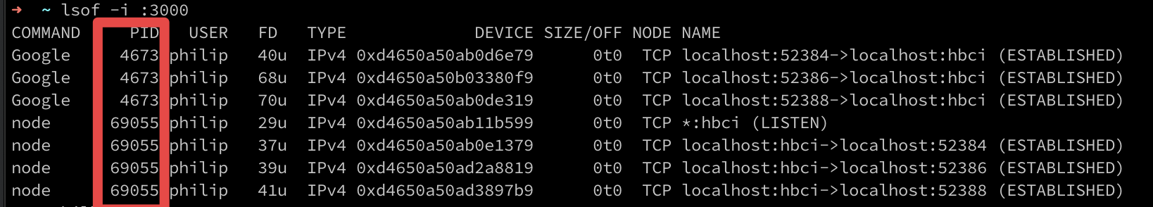 lsof -i :3000