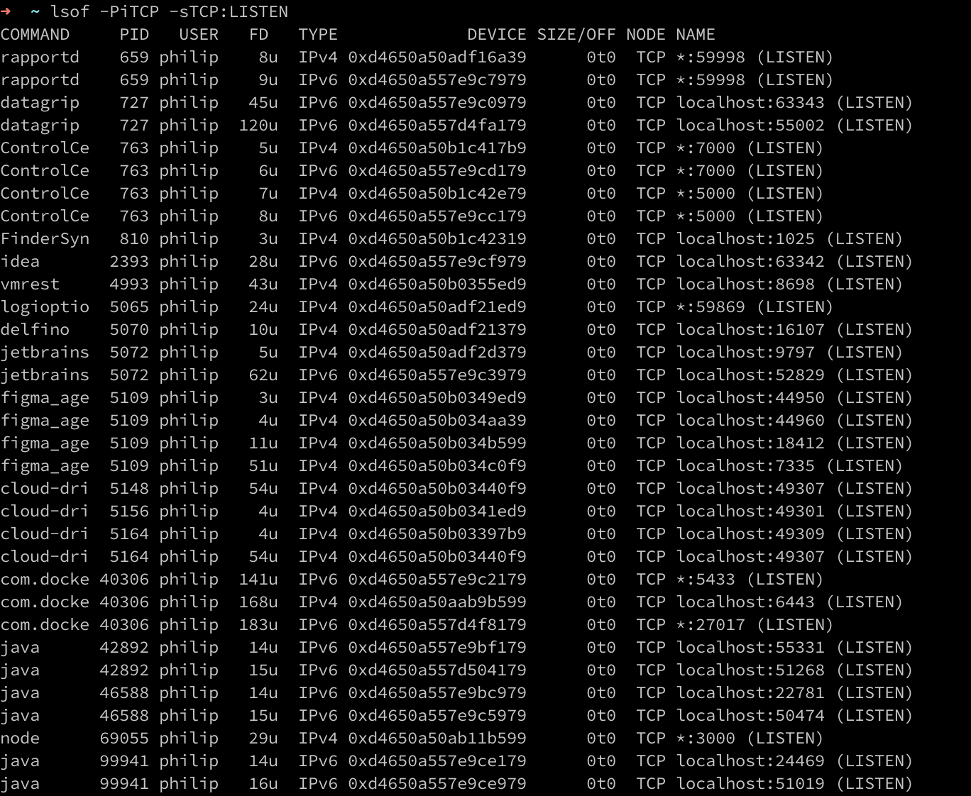 sudo lsof -i :3000